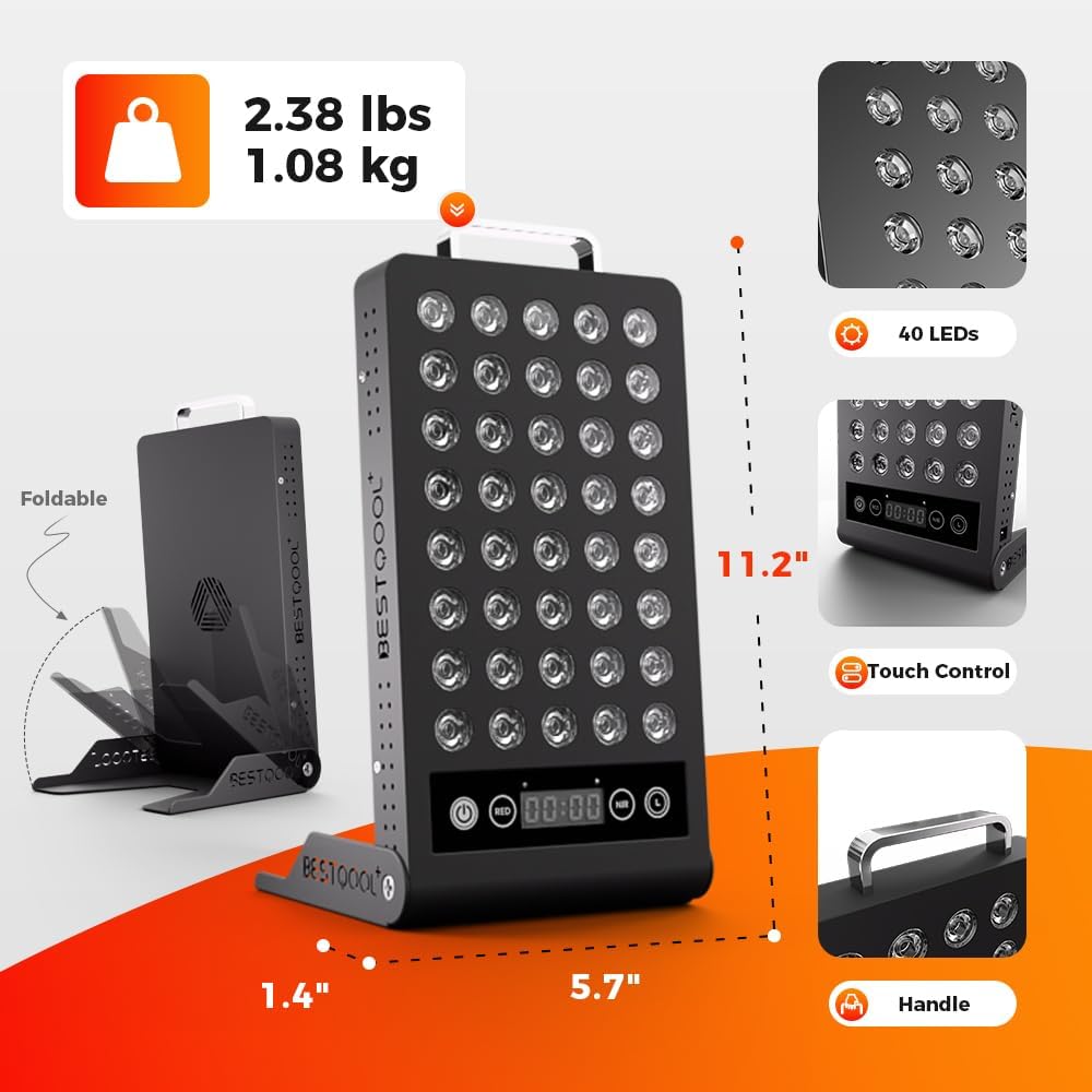 - Say goodbye to expensive spa: Saving numerous time and money to regain healthy mind and body at home. Thanks to the multi-functional touch screen system, durable appearance, and convenient foldable stand, BQ40 red light therapy can drive higher irradiance, making our 10-minute sessions equal to 20 minutes of other infrared light therapy. An easy way to optimize collagen production and improve workout recovery without the effort.