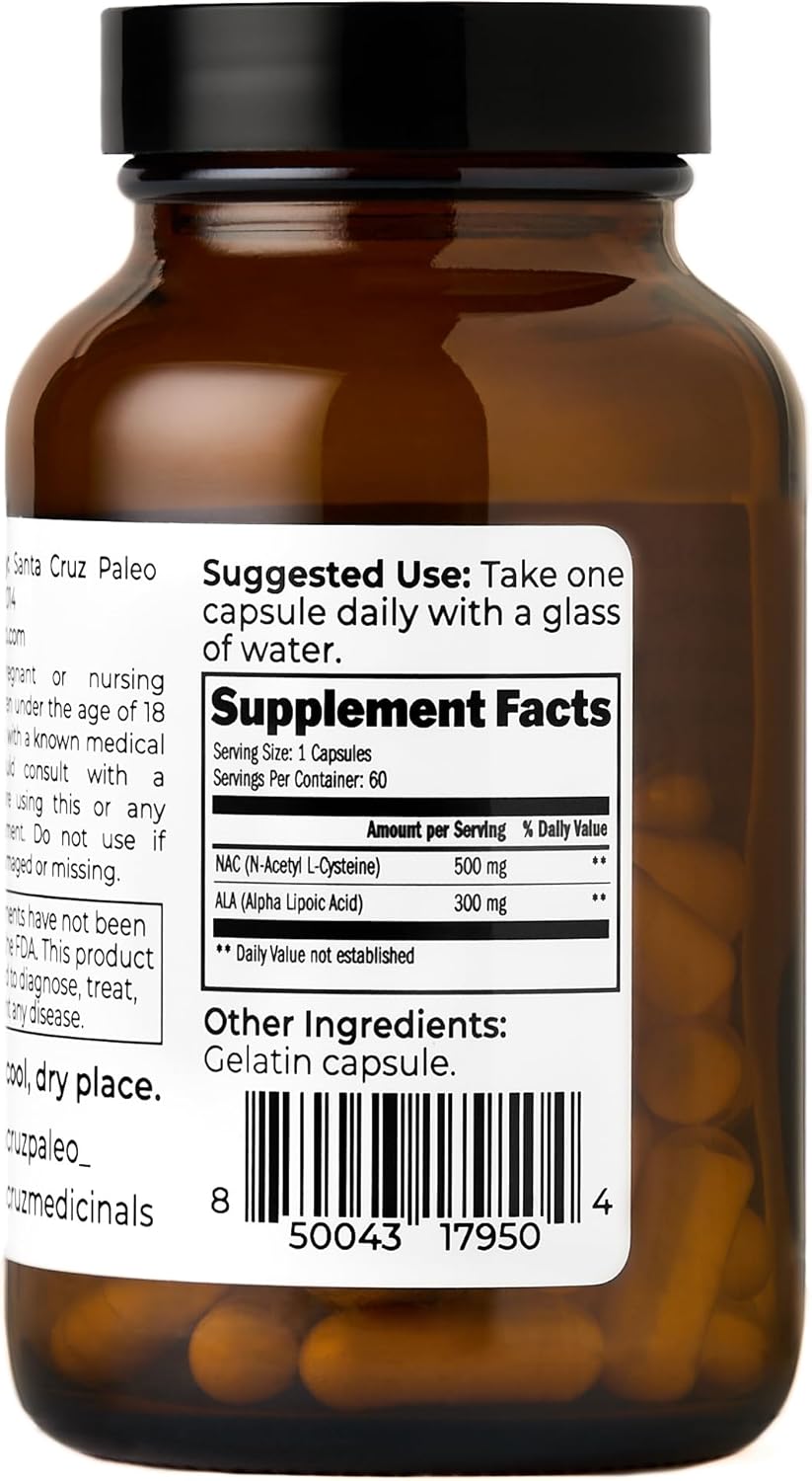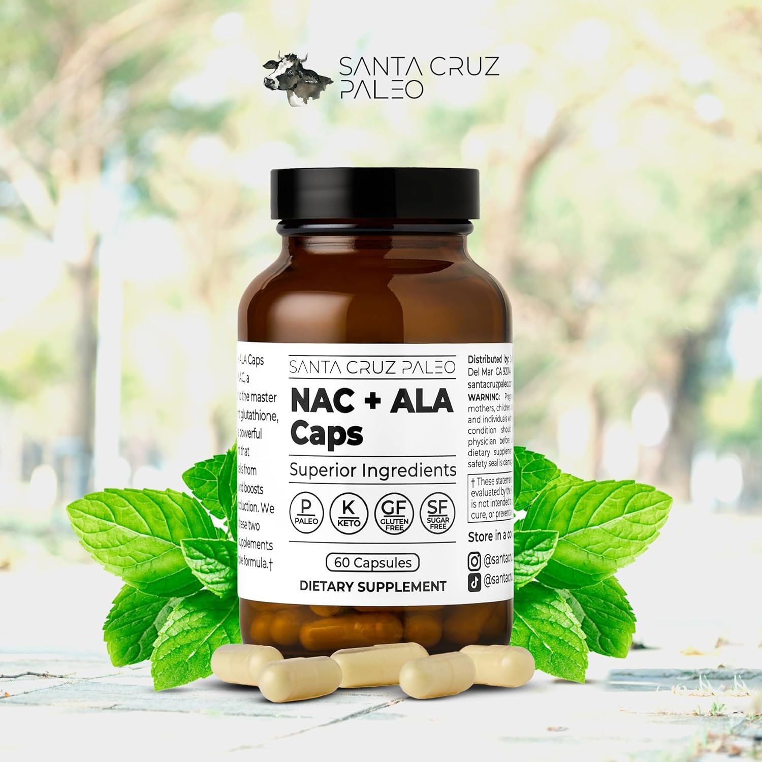 Santa Cruz Paleo NAC + ALA Capsules, This formula combines N-Acetyl Cystine and Alpha Lipoic Acid. Our formula has no fillers or binders and we use the highest quality sourcing available.
