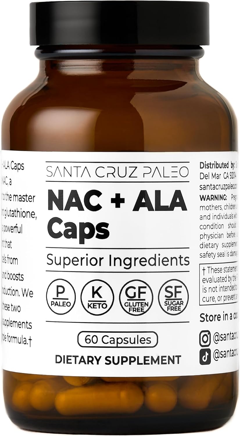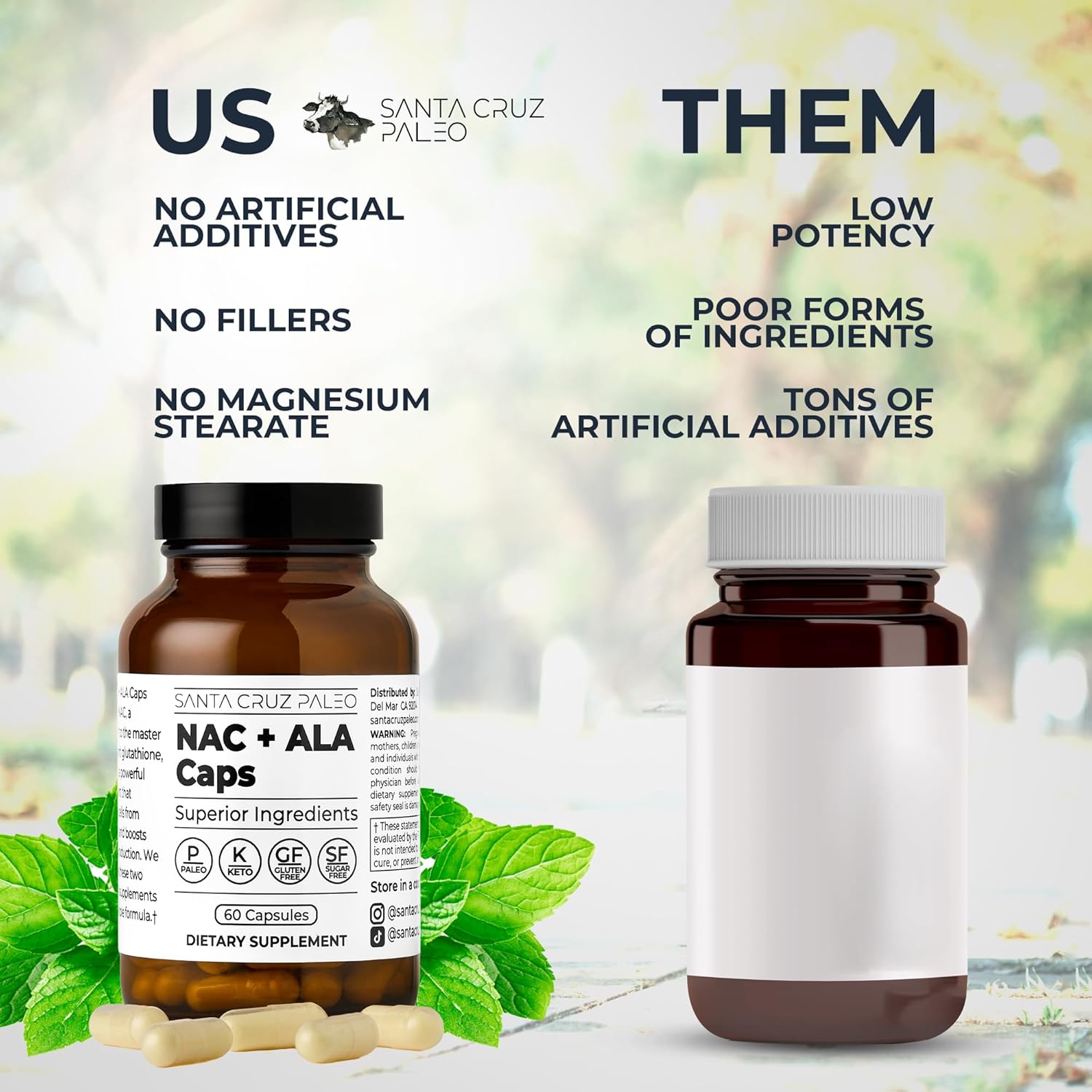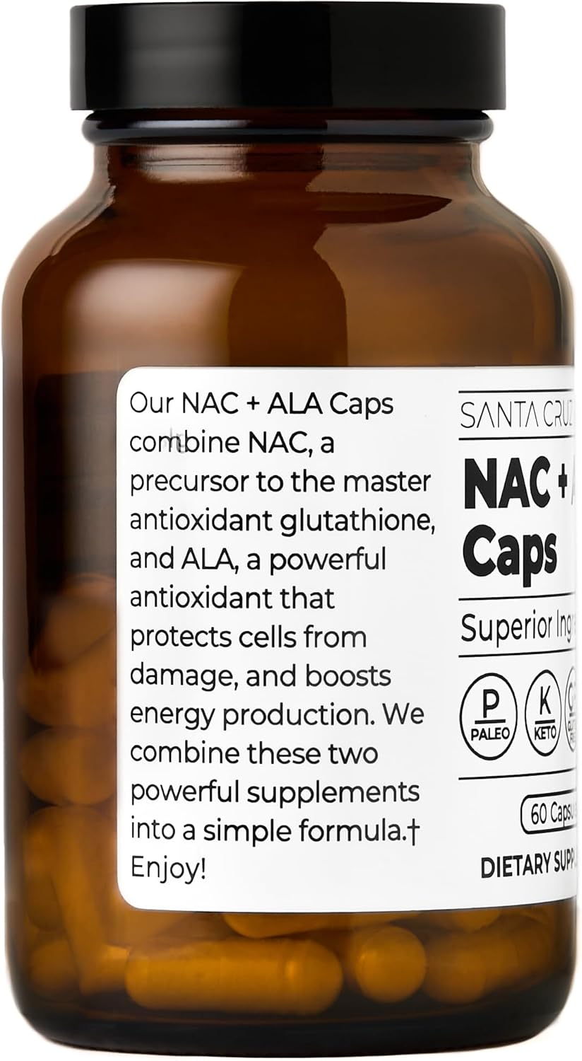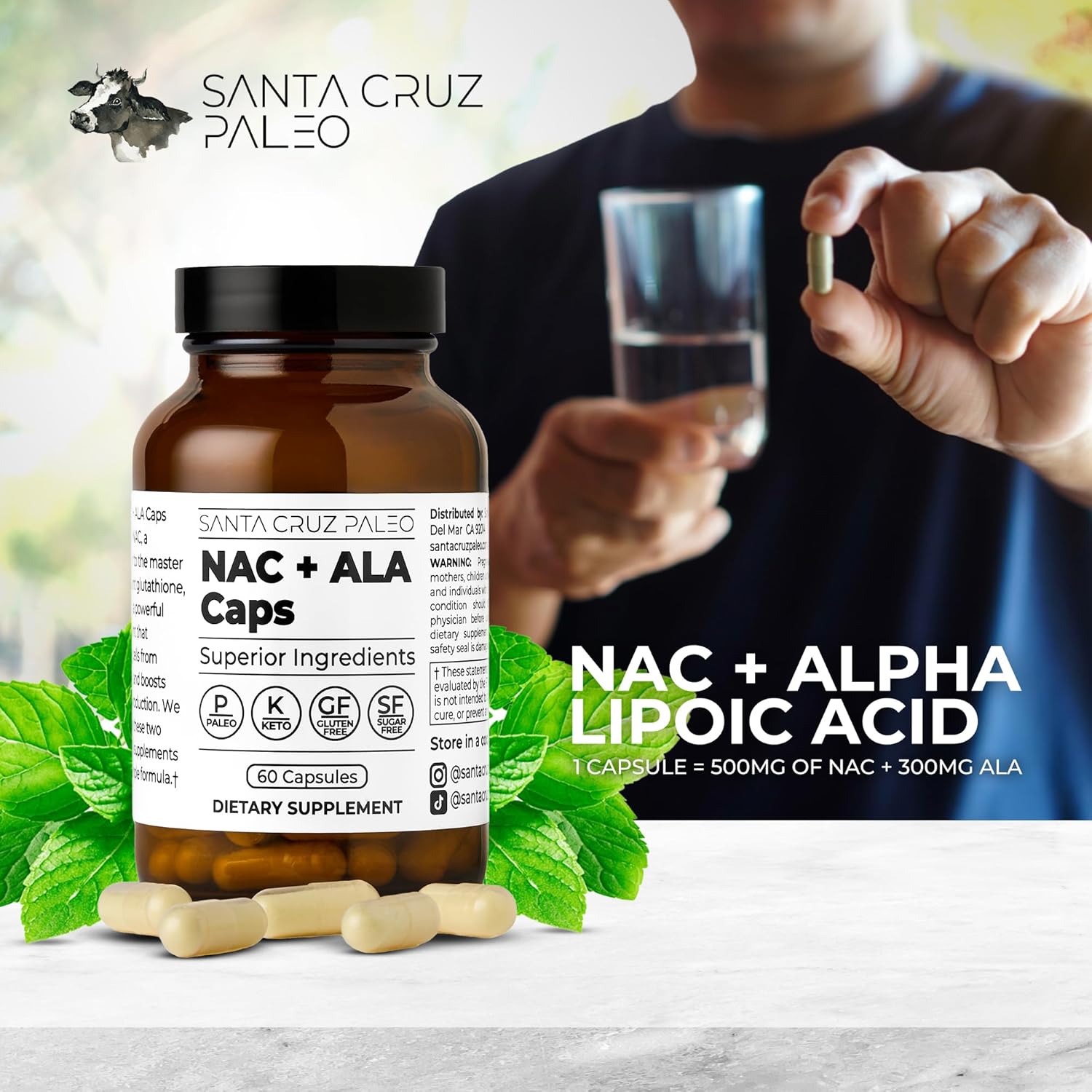 Santa Cruz Paleo NAC + ALA Capsules, This formula combines N-Acetyl Cystine and Alpha Lipoic Acid. Our formula has no fillers or binders and we use the highest quality sourcing available.