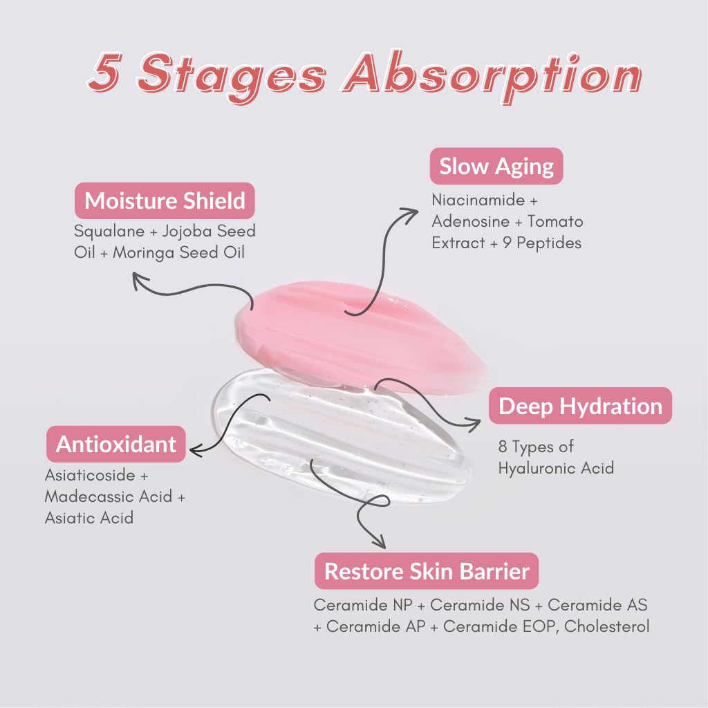 - 💧HYDRATING HYALURONIC ACID: Multiple low molecular weights of Hyaluronic Acid locks in moisture, plumps the skin, leaving it soft, hydrated and dewy.